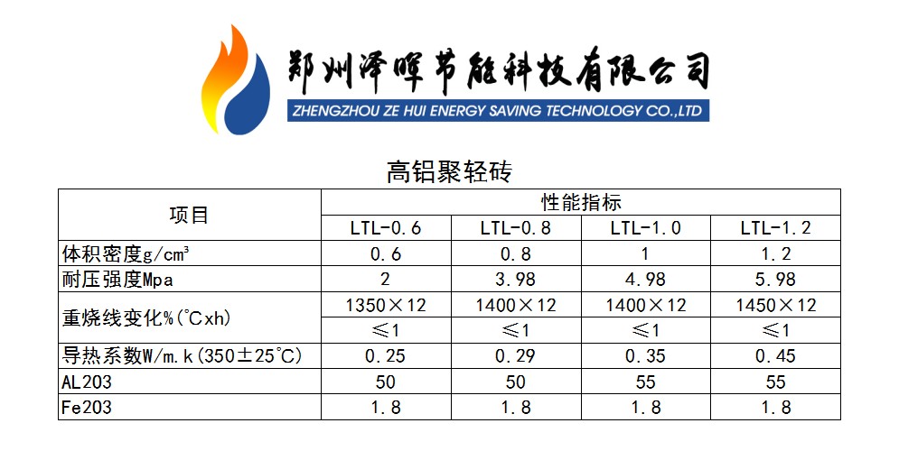 輕質(zhì)高鋁磚--高鋁聚輕磚理化指標