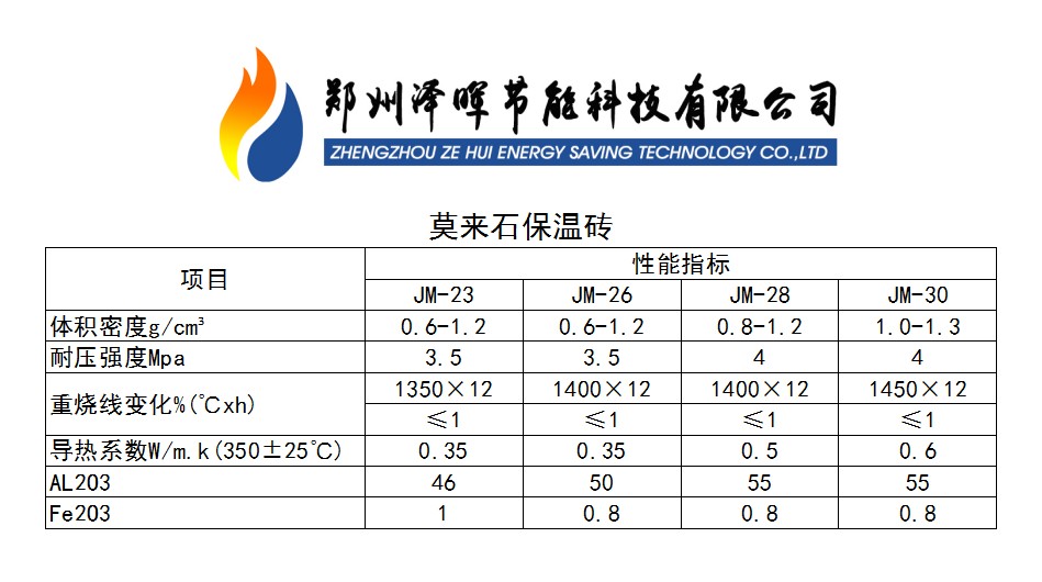 莫來石磚--莫來石保溫磚理化指標